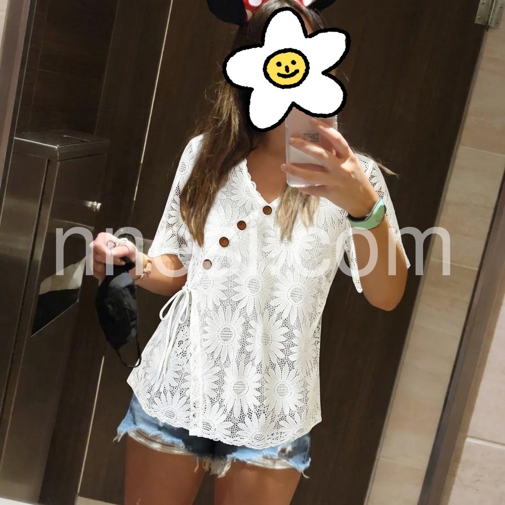 This white lace top is absolutely perfect for summer! The daisy pattern is so cute and it is surprisingly soft. I wore it with jeans just like the picture and got so many compliments. True to size.