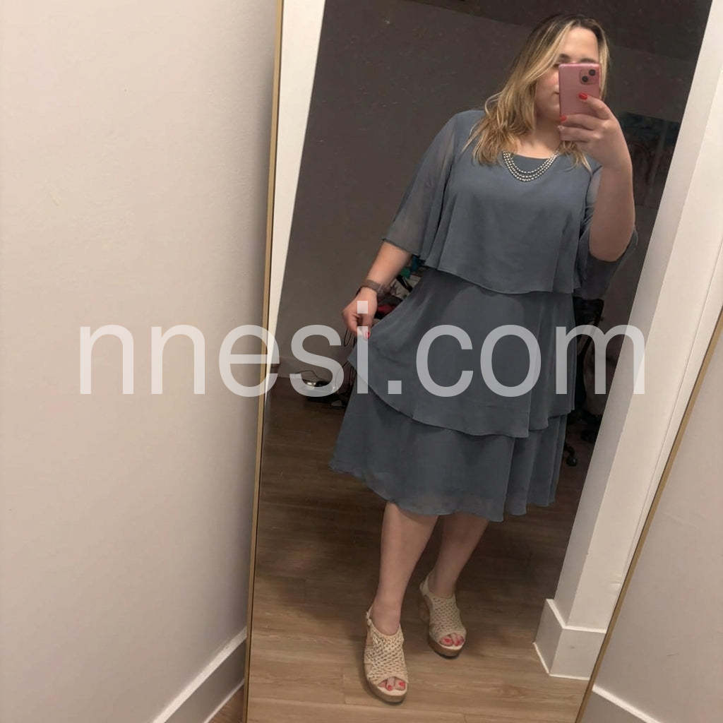 I took this dress on a cruise for the formal dinner nights, and it was a lifesaver. It packed wonderfully with minimal wrinkles. The greyish-blue color is stunning, and I felt very confident wearing it. It is modest yet very stylish.