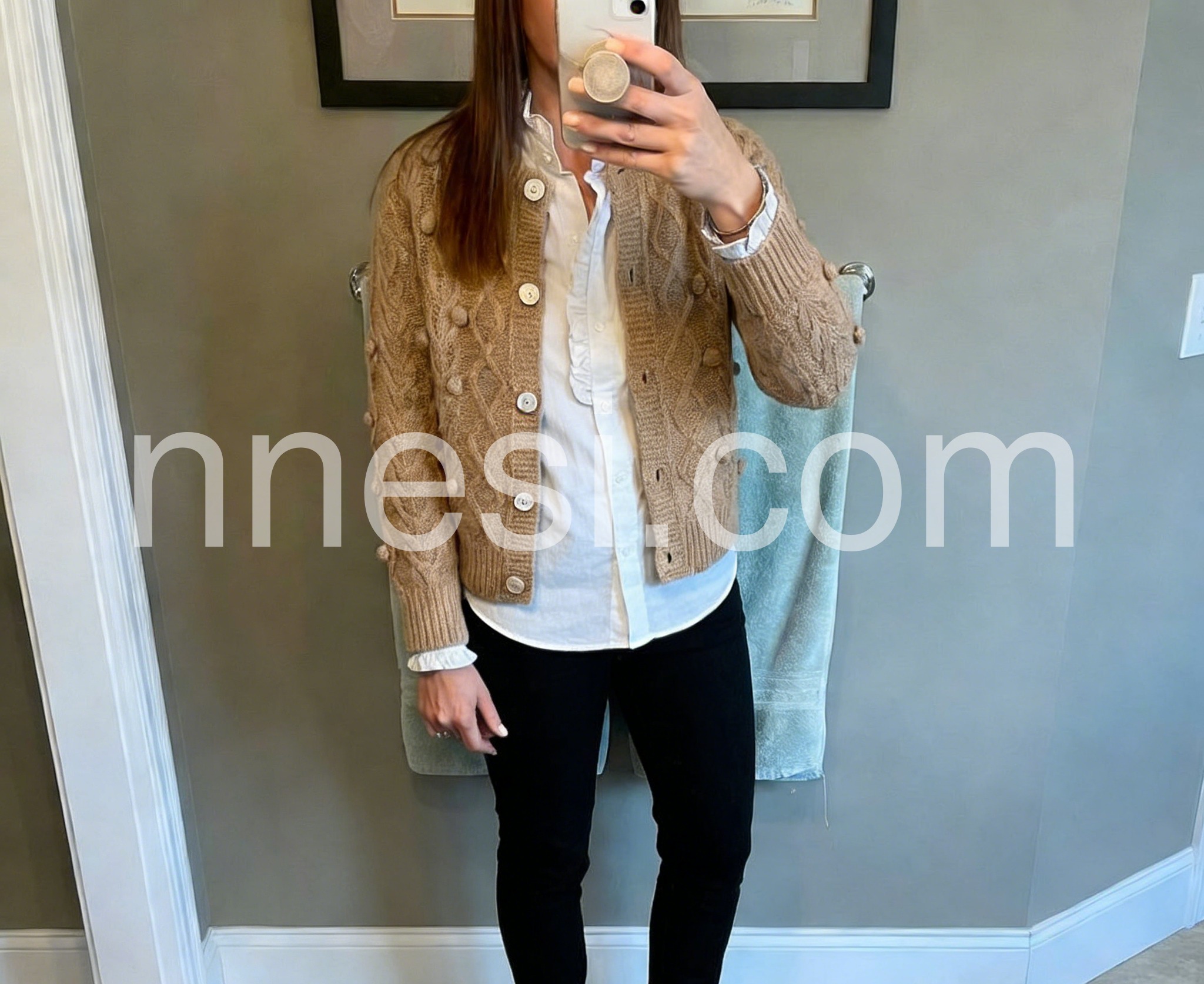 Iβm obsessed with this tan cardigan! The intricate cable pattern gives it a luxurious, handmade feel, and the soft knit is gentle on the skin. The oversized fit is so flattering and forgivingβgreat for hiding any midsection concerns. The buttons contrast beautifully with the warm brown hue, making it look polished. Iβve worn it to work and casual outings, and it always gets compliments. Itβs quickly become my go-to layering piece!