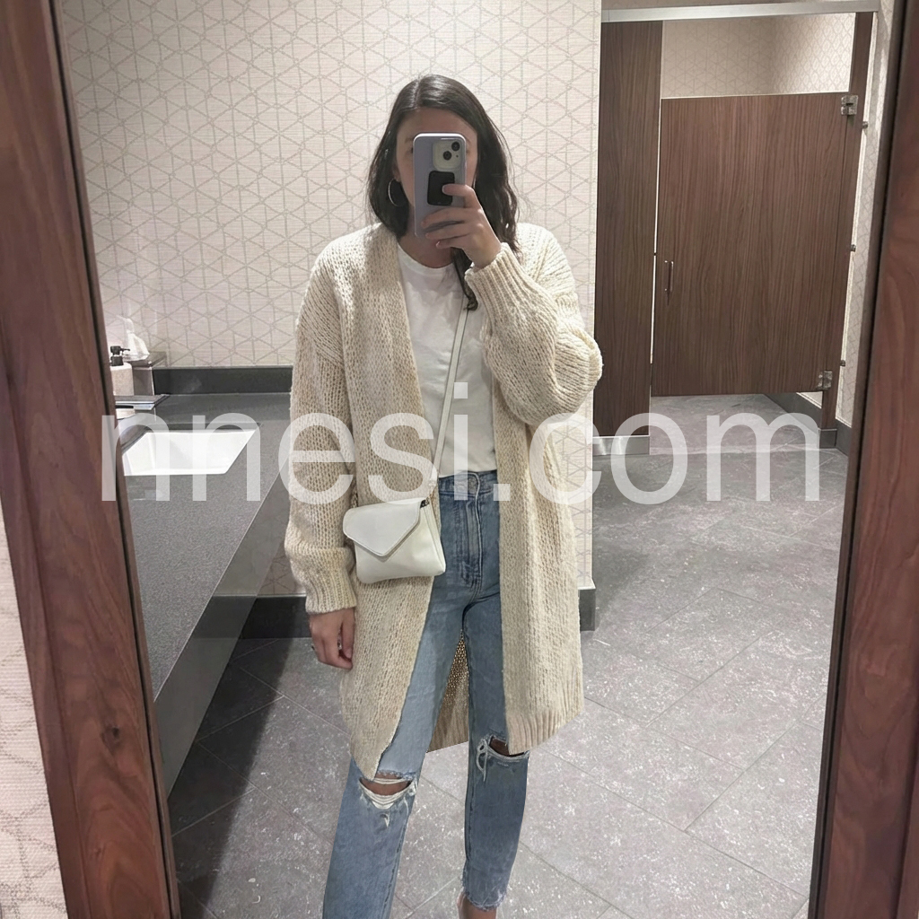 Iβm absolutely obsessed with this longline knit cardigan! The chunky, textured knit gives it such a luxe, handmade feel, and the creamy off-white color is timeless and goes with everything in my closet. The oversized fit is so comfortable for all-day wear, and the flowy silhouette adds a relaxed, effortless vibe to any look. Iβve styled it with jeans and sneakers for a casual day out, and with leggings and boots for a cozy fall look. Itβs warm, stylish, and worth every penny!