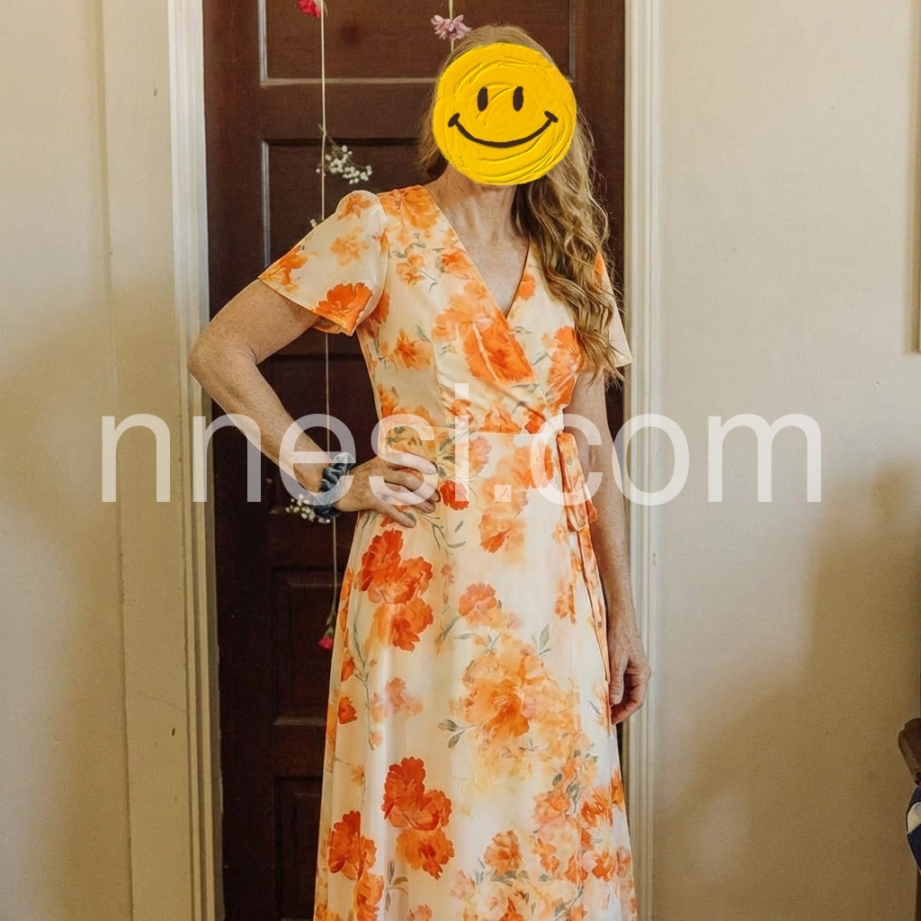 Beautiful summer dress. The orange flowers are so pretty and cheerful. I wore this to a summer wedding and it was lightweight enough to keep me cool during the outdoor ceremony, yet elegant enough for the reception. Five stars!