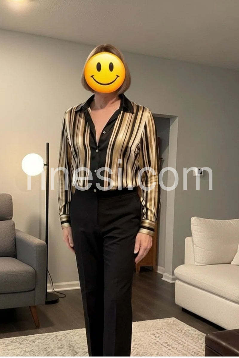 I am absolutely loving this striped blouse! π The fit is fantastic, and the fabric feels so luxurious against my skin. It looks incredibly chic! β¨ Definitely a new favorite in my wardrobe. Highly recommend! π\"