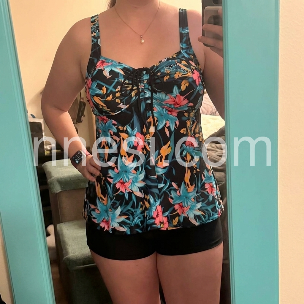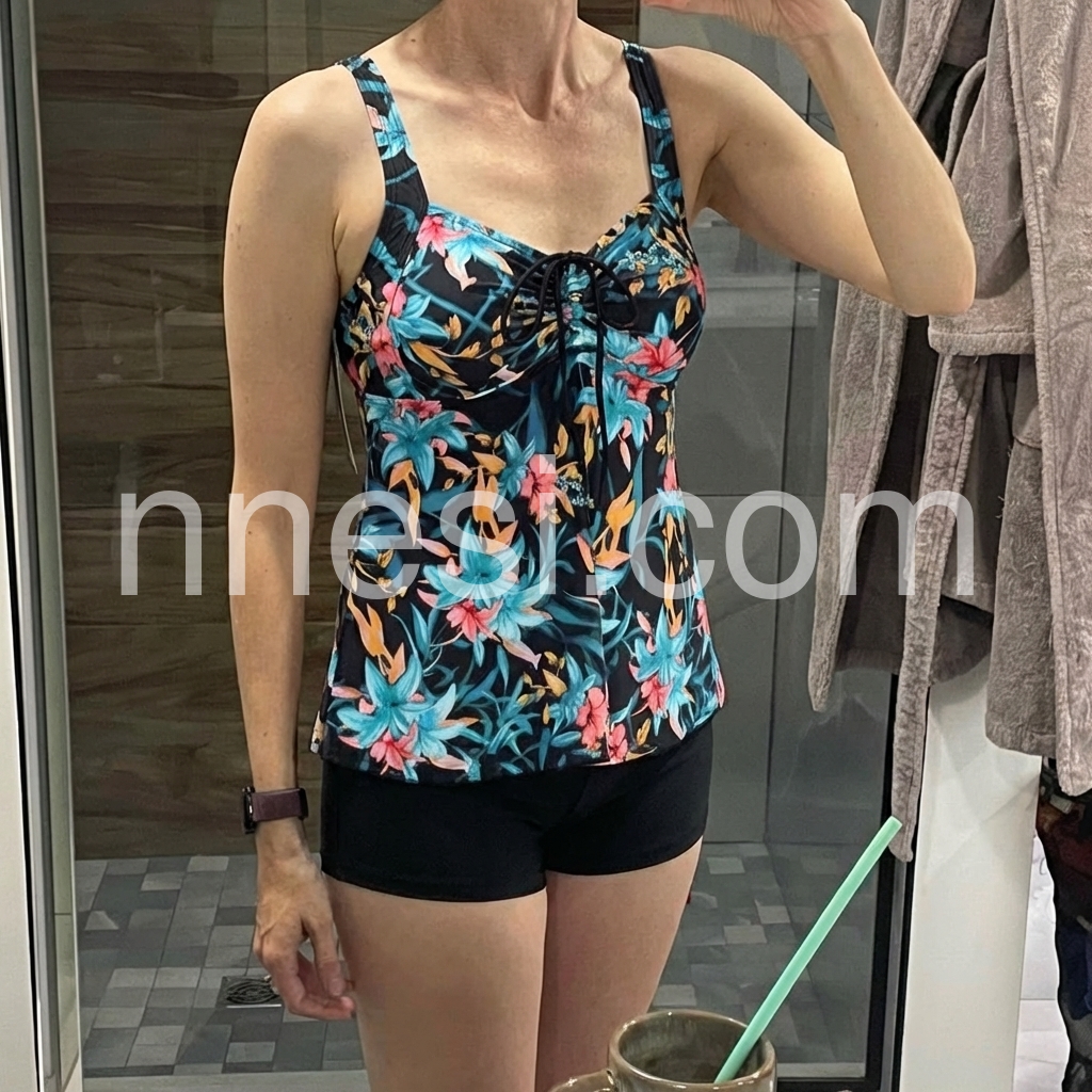 Iβm in love with this floral tankini! The dark base with bright blue and pink flowers is so chic, and the tankini top hides my midsection perfectly. The straps are adjustable for a secure fit, and the high-waisted shorts offer modest coverage. Itβs lightweight and breathable, great for hot summer days. Iβve received so many complimentsβdefinitely my new favorite swimwear!
