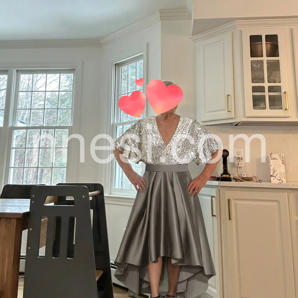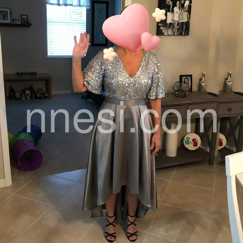I absolutely love this dress! The silver sequins are gorgeous and really catch the light, and the V-neck looks so flattering. The skirt has a beautiful flowing shape and it feels comfortable to wear. I wore it for a special event and got so many complimentsβlooks exactly like the photos. Great quality!