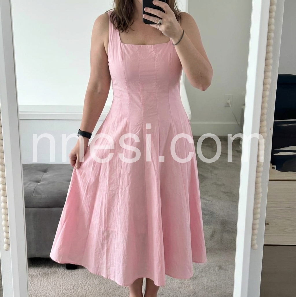 This dress is so fun! The quality is better than I expectedβand it feels worth the price. The subtle shade of pink lends the dress a romantic and delicate charm. It makes the overall look slightly more casual, which ended up being less formal than I needed for a wedding. Iβm 5β6β with shorter legs, and the Large fit me as shown in the photos (no shoes). Iβve included a photo for anyone who finds real-life examples helpful when deciding.
