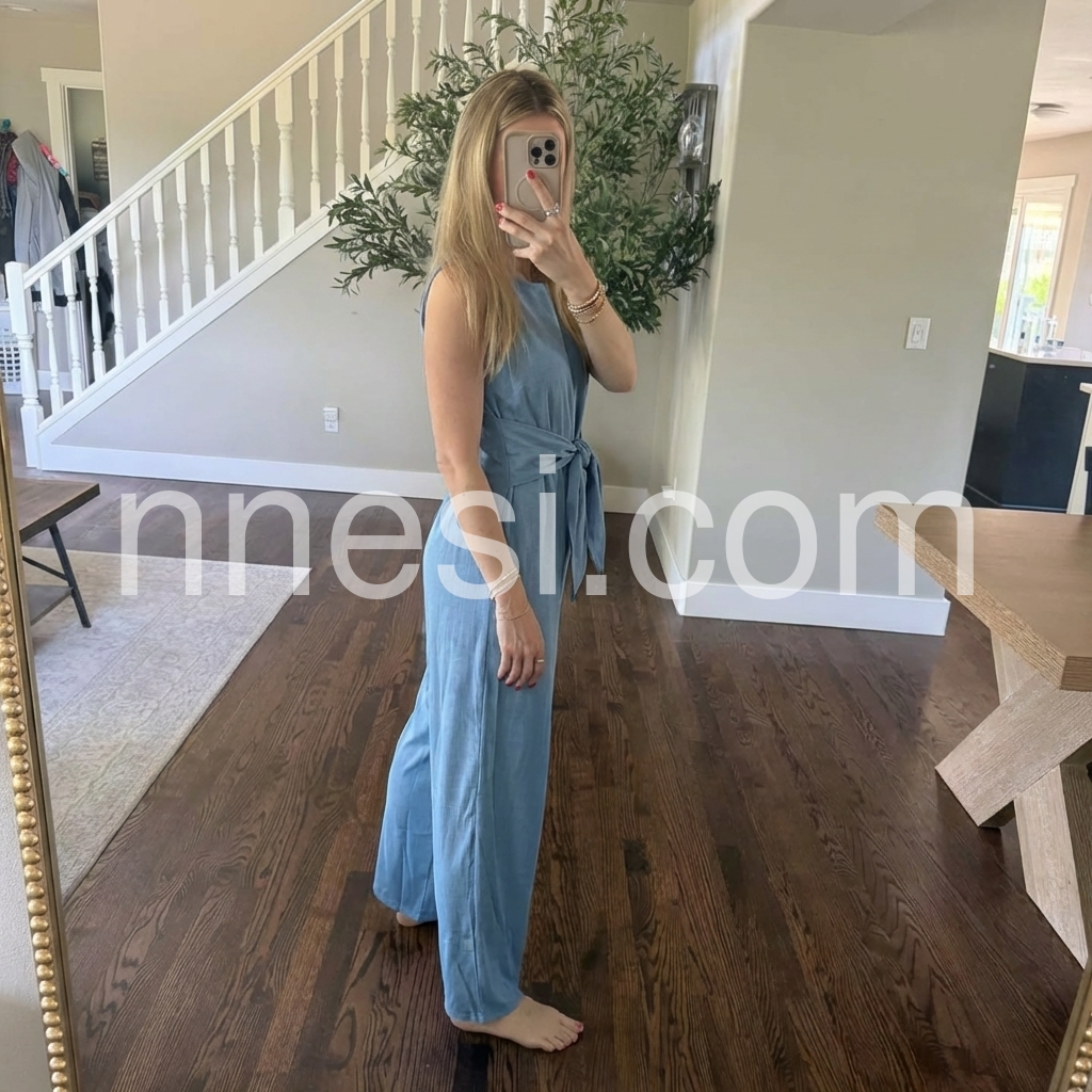 Looks great and is super comfy. I can wear this around the house and feel like I'm in loungewear, but I can also wear this to a nice restaraunt or event and feel like I look nice. The neck is not too tight and the fabric is not itchy or irritating. And the legs are a bit long for my body proportions, they're just right for I wear boots with a bit of a heel. It's also not too feminine, something I struggle to find in jumpsuits like this.