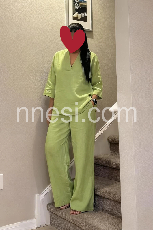 I loved this set the color is beautiful, the fabric feels amazing, and the pants have the perfect length. It barely wrinkles, itβs not see-through at all, and it feels very durable. It looks super stylish and honestly, itβs one of my best purchases. I absolutely loved it.