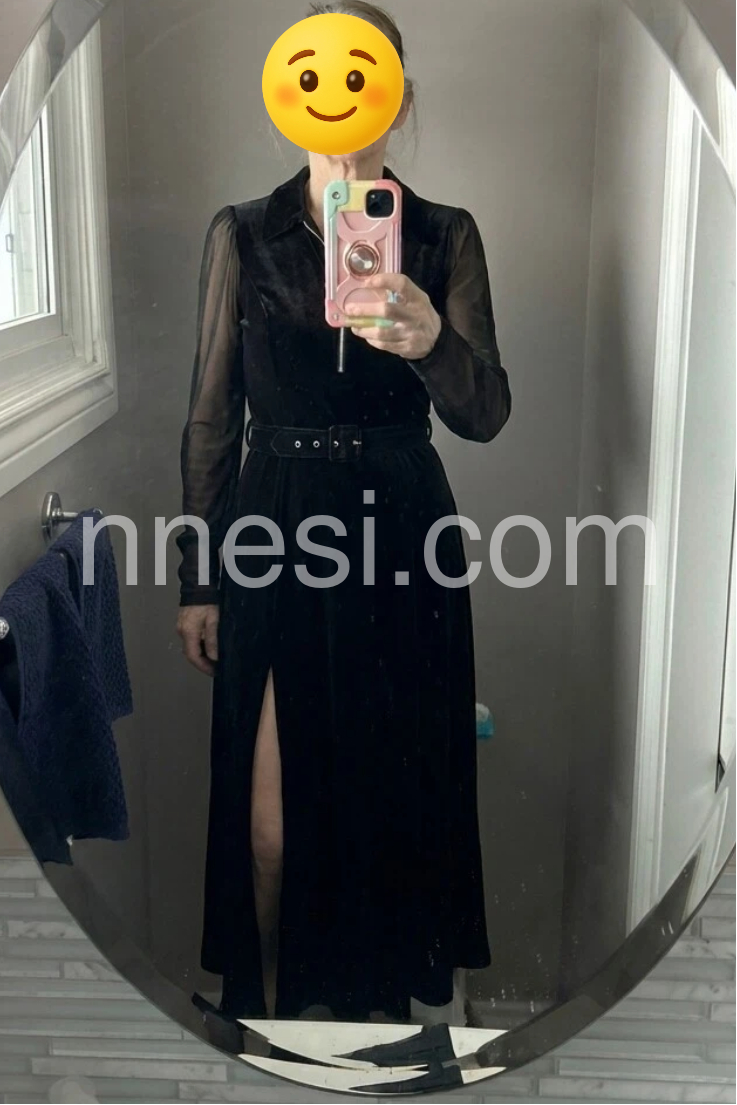 This is a beautiful black maxi dress. The zip neckline and the waist belt create such a flattering shape, and the length is perfect with boots. It feels comfortable while still looking very polished and elegant. I wore it on a cruise and got compliments right away.