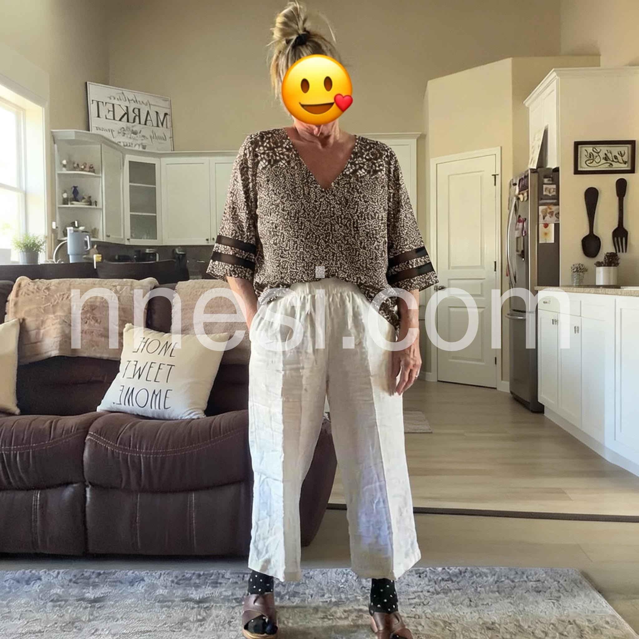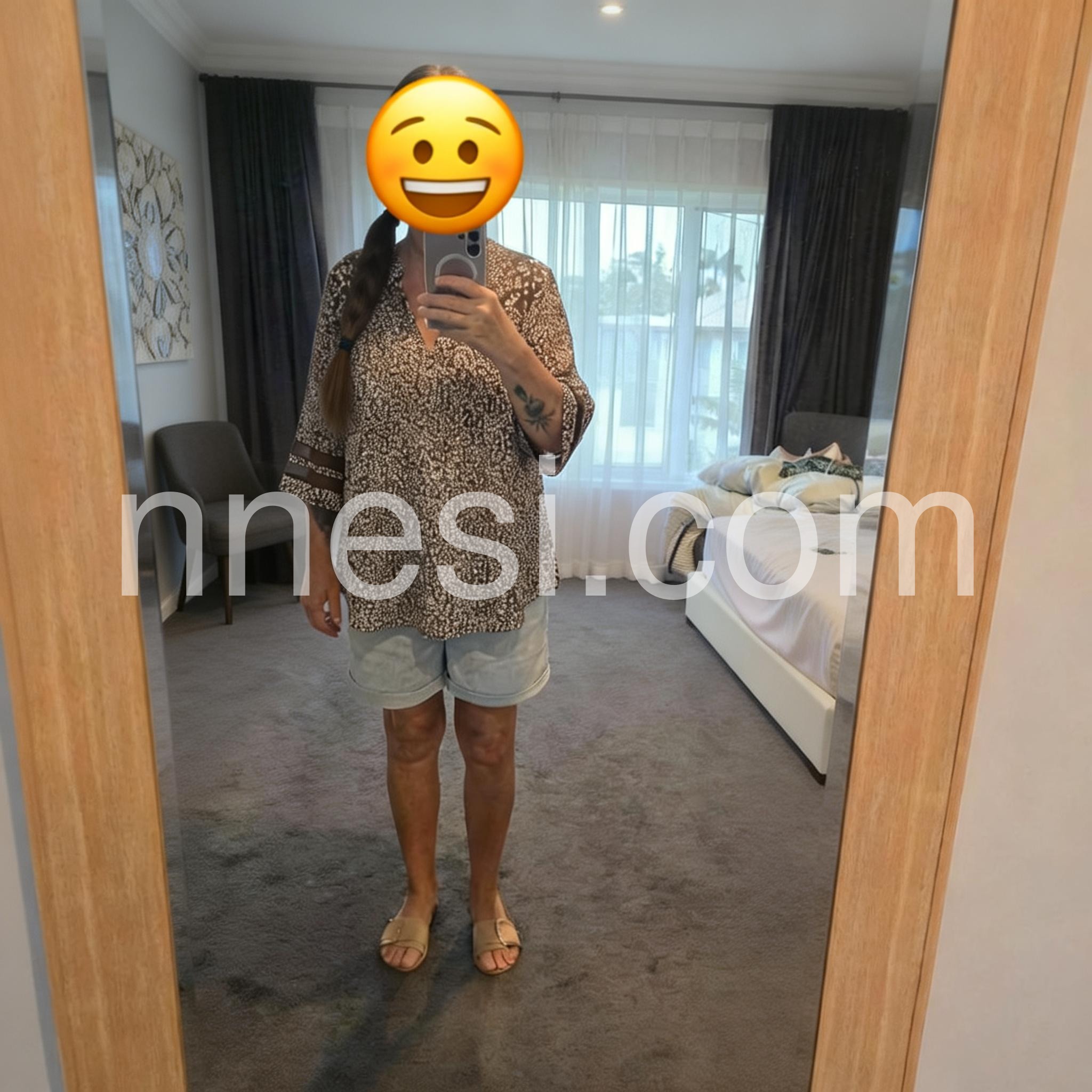 This is so cute on. This was my second NNESI clothing I purchased and I again was presently surprised. I get nervous buying things without being able to try on first but the size was great. With 3 kids it is much easier to shop online than have to go in to stores so I'm happy I was able to get a nice new top without needing to spend hours out shopping.