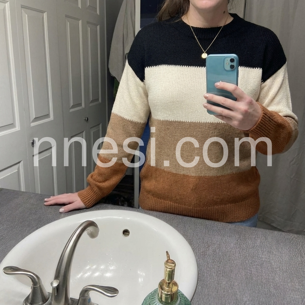 I love this sweater, the fit, the quality, and the color block gives so many more options. Looks great with jeans and also with leggings and boots. 5β1 115 lbs