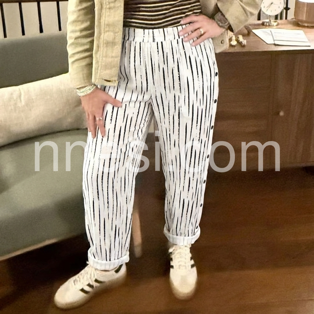 I am usually hesitant about buying pants online, but these exceeded my expectations. They hang beautifully and do not cling. The striped print is very modern and chic.