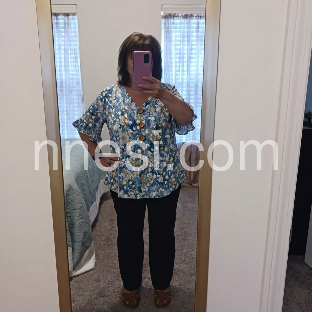 Super comfortable top for everyday wear. The v-neck is just right, not too deep but very flattering. The fabric feels very breathable even on warmer days.