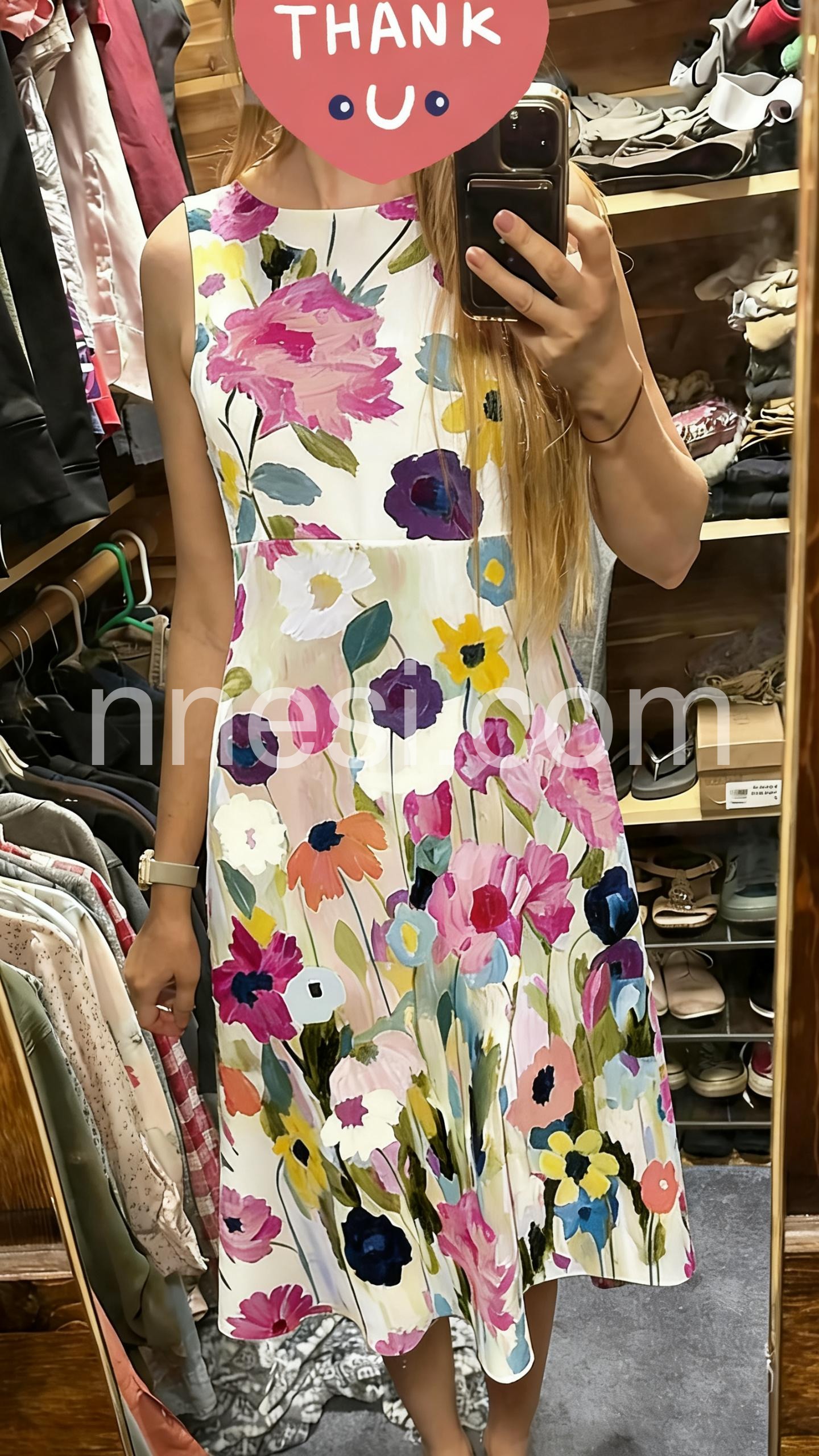 I was looking for a modest but cute dress for a daytime event and this hit the mark. The sleeveless cut keeps me cool and the vibrant floral print is perfect for spring.